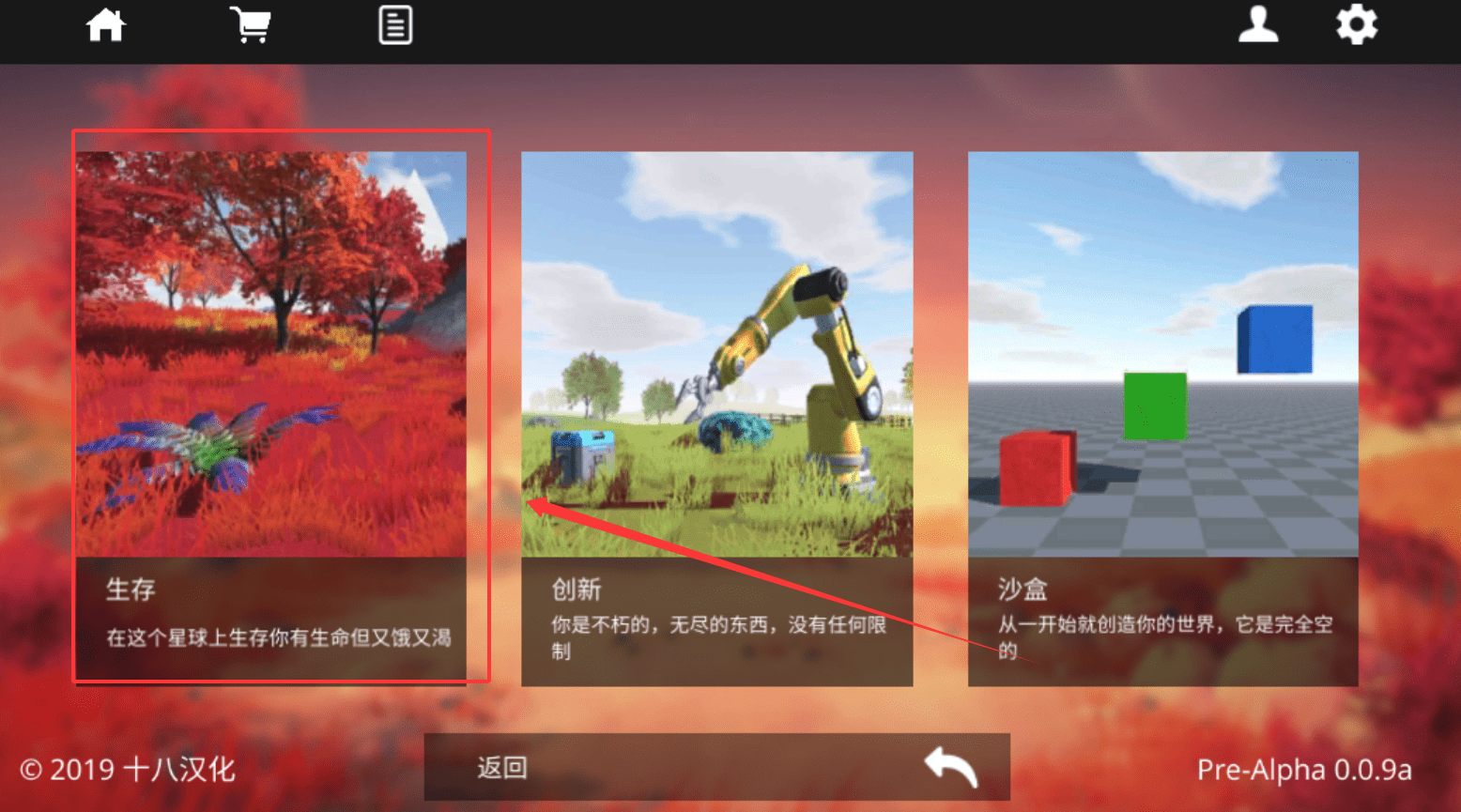 修改特性:汉化、无条件制造物品;在游戏进行界面,点击右上角“WATER”->点击右边“扳手”图标即可进入建造界面。