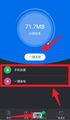 4、在清理功能中,用户可一键清理垃圾文件,同时支持手机加速与省电模式,帮助系统释放空间并延长电池续航时间。