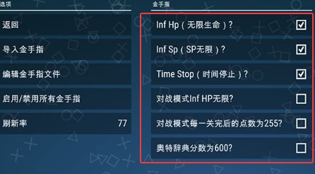 3、进入金手指菜单会看到多种修改选项,包括无限能量、一键必杀等功能,勾选后需要重启生效。