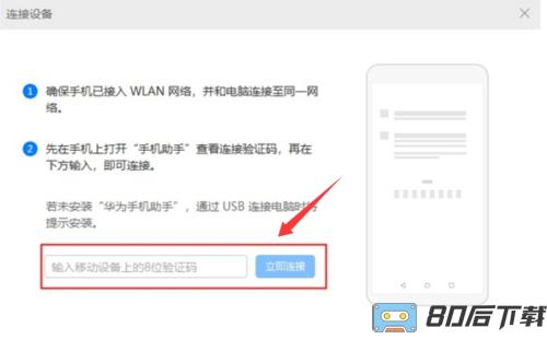4、在电脑端的连接窗口中输入手机显示的验证码,点击“立即连接”即可完成。