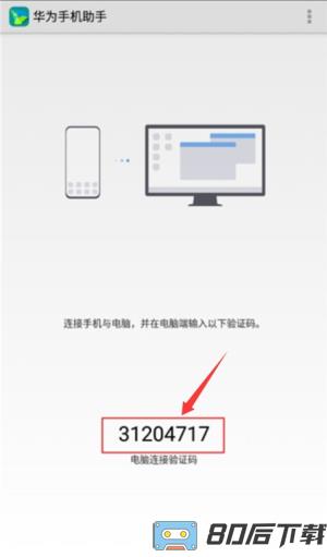 3、此时手机应用界面将显示一组数字验证码,请记录此验证码信息。