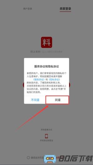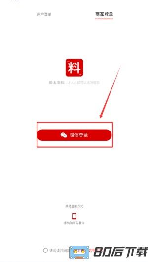 2、登录前需选择身份,可点击“用户登录”或“商家登录”进入对应通道。