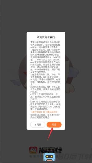1、首次启动应用时,系统会显示用户协议和隐私政策,阅读后点击同意按钮进入主界面。