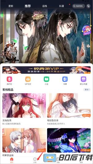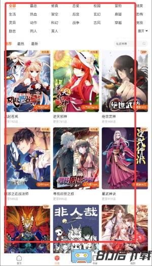 2、在主界面中,可找到并点击“分类”或“漫画分类”功能按钮,进入类别页面。