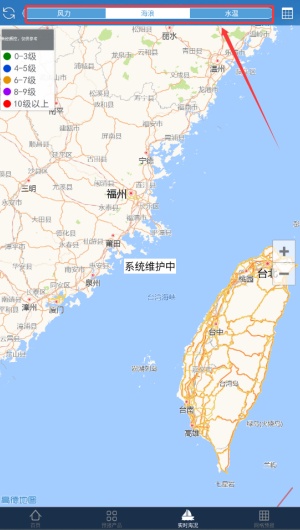 2、随后在功能界面中,选取希望查询的数据类型,例如风速、水温或海浪。