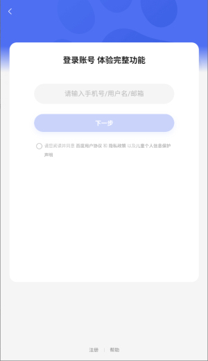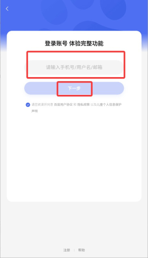 2、初次使用需完成账户登录流程,新用户可选择注册账号选项。