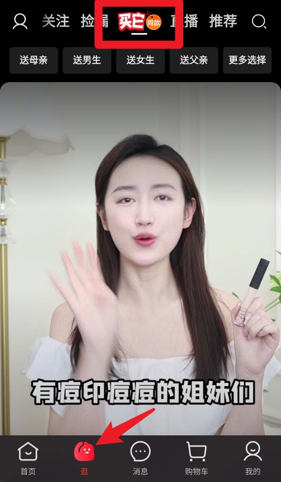 2、点击“逛”就能进入种草直播间,看达人推荐爆款,边看边买超有趣!