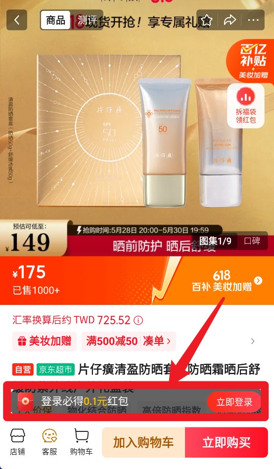 4、看到心仪好物别犹豫,点“立即登录”拿红包,享专属优惠更划算!