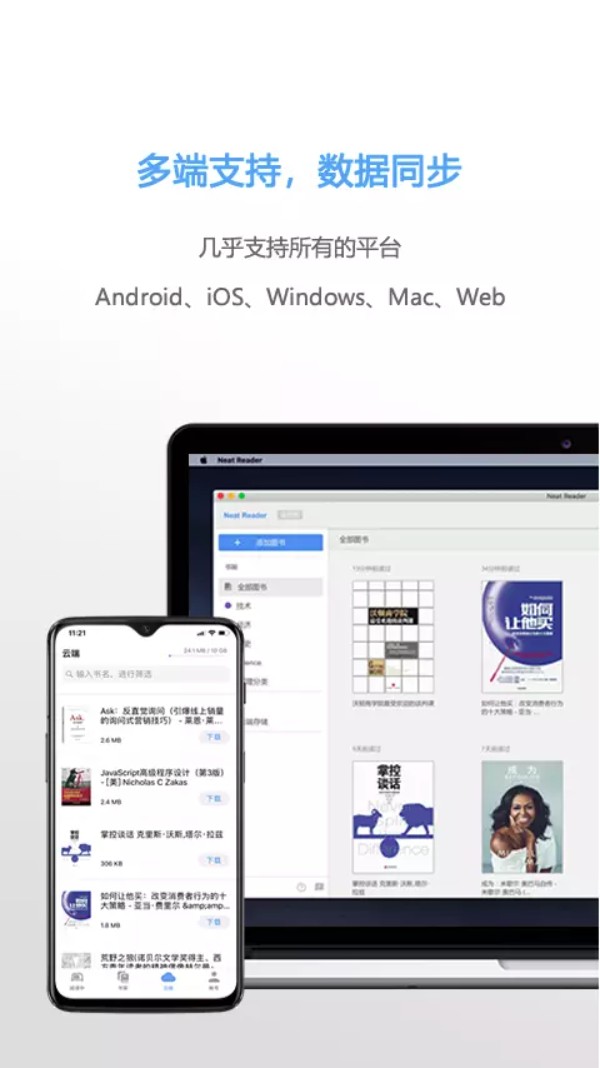 支持“云端存储,多端同步”的跨平台ePub阅读器,目前已经支持所有主流的系统平台。您可以在任意平台上打开并阅读ePub文件,并体验到无缝衔接的阅读体验。