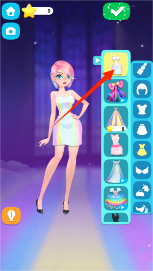 3、从收藏库中挑选心仪的服装款式,通过拖拽或点选方式为虚拟角色完成整体造型搭配。