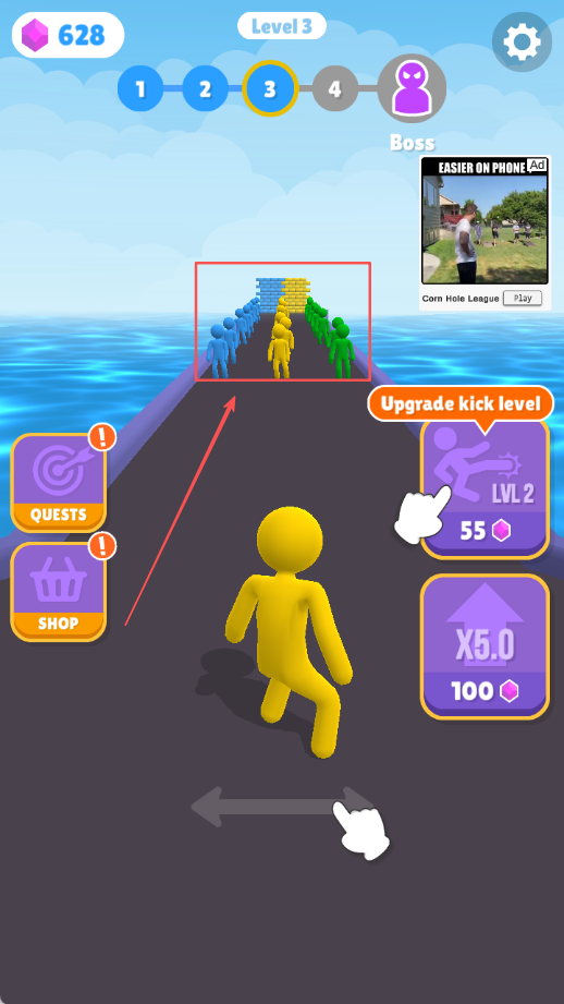 2、注意避开不同颜色的角色,避免合并导致队伍规模缩减,保持队伍的纯粹性能获得更高分数评价,注意观察周围环境。