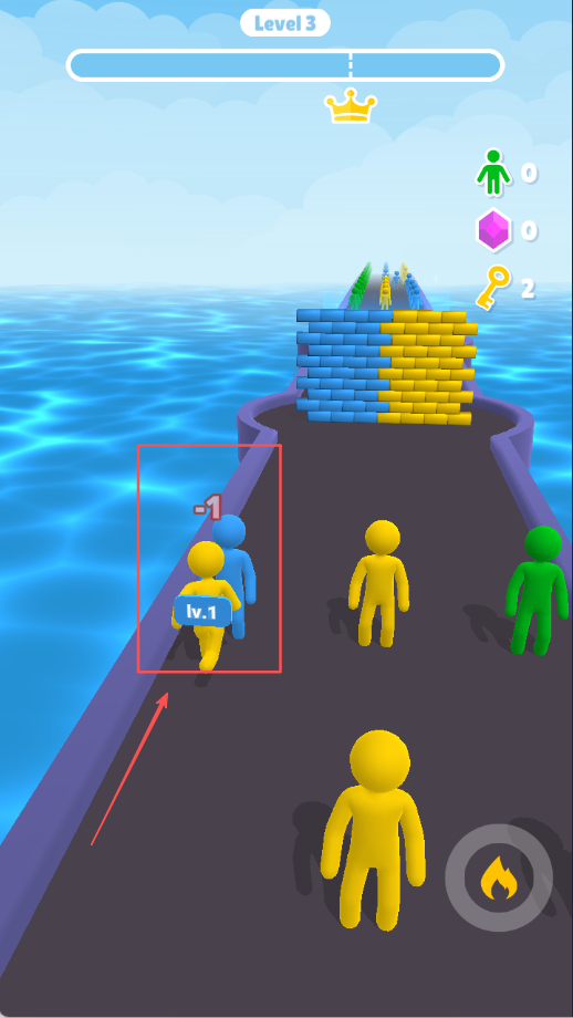1、选择与角色相同颜色的同伴进行合并,壮大队伍规模增强实力,注意观察场景中的人员分布情况制定最佳行进路线,提高收集效率。
