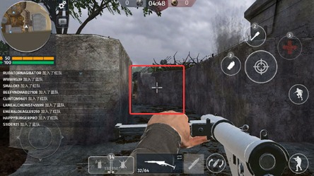 2、进入战场后注意听脚步声,右手在屏幕右侧滑动调整准心,瞄准时尽量瞄头部位置。
