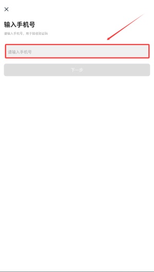 3、根据提示输入您注册时使用的手机号码,随后点击下一步按钮。