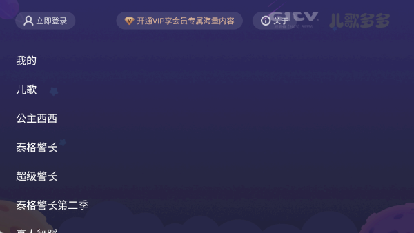 1.进入应用会看见有各式各样的选项“儿歌、公主西西、泰格警长和超级警长等等”;