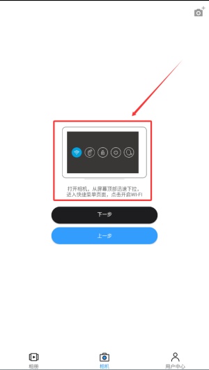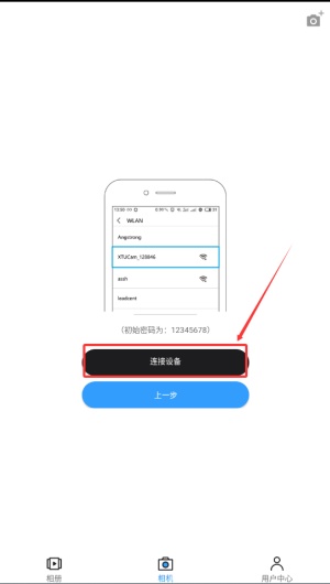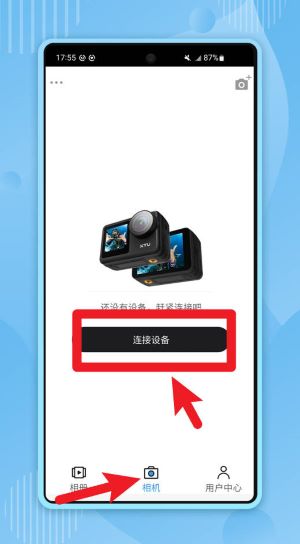 1、打开相机应用后点击“连接设备”按钮,开始与外部拍摄设备建立无线连接。