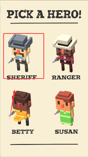 1、在角色选择界面中根据属性与技能特点,挑选适合个人操作风格或对战需求的牛仔人物。