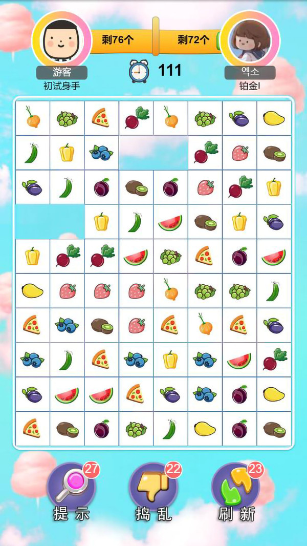 4、留意目标和分数变化,游戏的目标是比对手更快消除所有方块,界面顶部的“剩余XX个”会实时更新。