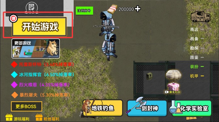 1、打开游戏后点击开始战斗按钮,系统会加载可用武器与角色数据,确认装备配置后即可进入地图选择界面。