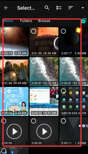 2、进入功能后,您可以从手机中选择单个或多个视频文件进行批量导入与处理。