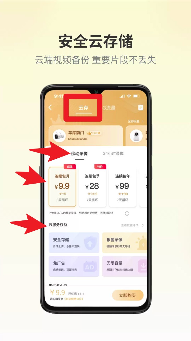 2. 云存服务:开通云存储服务,保障视频数据安全。