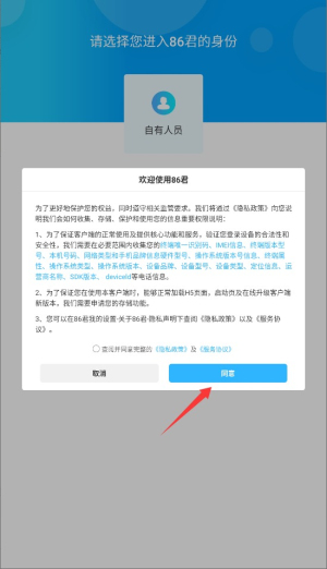 1、首次启动应用时,系统会显示用户协议和隐私政策,阅读后点击同意按钮进入主界面。