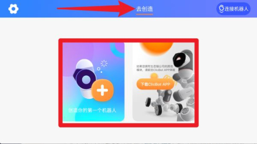 4、点击上方“去创造”栏目,可进入创造页面,在此自定义创造你的第一个机器人形态与功能。