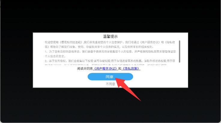 1、启动游戏后,请先仔细阅读并勾选同意用户协议与隐私政策,完成初始设置。