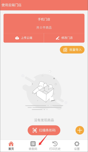 2、进入程序首页后,在功能导航区找到并点击"收款码"选项,进入收款工具设置页面。