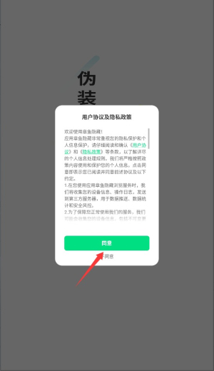 1、首次启动应用时,系统会显示用户协议和隐私政策,阅读后点击同意按钮进入主界面。