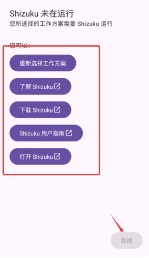 3、点击下一步,确保关联的Shizuku服务已启动并授权,返回本软件完成设置,提示“已准备就绪”。