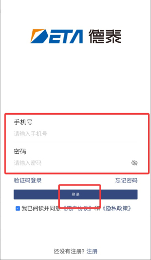 4、输入已注册的手机号码与对应密码信息,点击登录按钮完成账户验证。