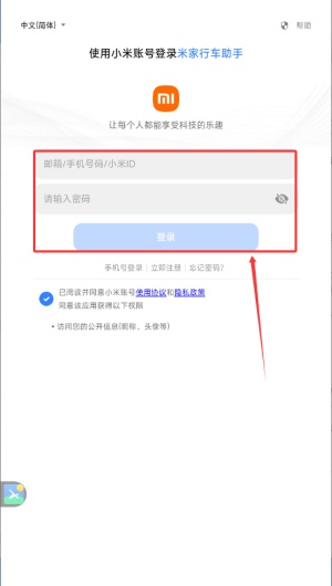 2、在登录界面中,选择账号密码方式,输入注册手机号与对应密码完成登录。