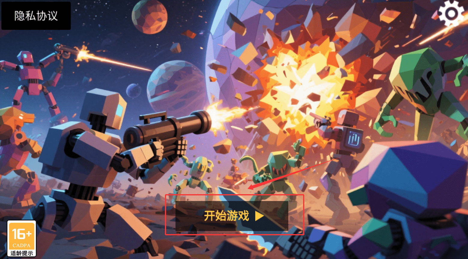 1、进入游戏后请先阅读隐私协议,点击开始游戏即可进入主界面,此时注意适龄提示与认证标志。