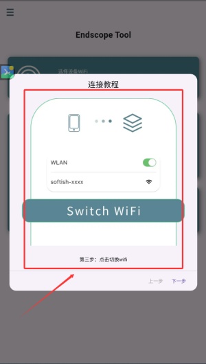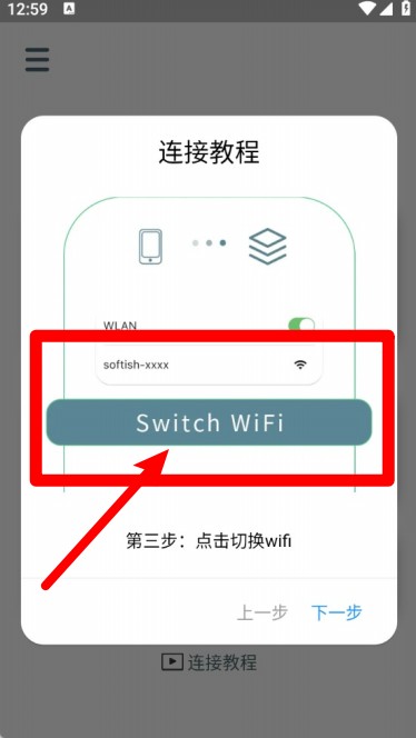 3.点击Switch WiFi按钮切换WiFi,确认连接到设备,速度飞快助你畅享操作爽感。
