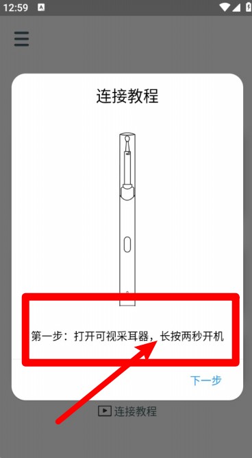 4.App里面点击开始就可以看到无线视频传输,开始采耳。使用完成后,长按电源键2秒钟关机。