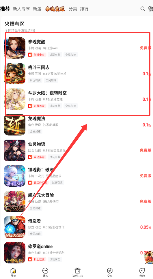 4、软件里还有各种福利活动别忘了看。在“福利中心”或者游戏图标下的标签。