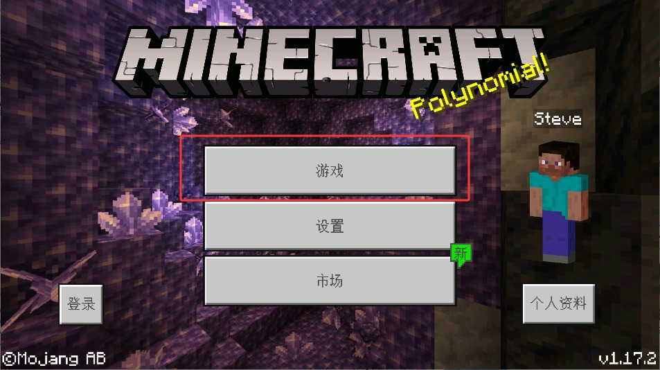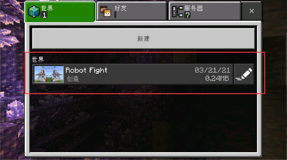 1、进入游戏界面点击“游戏”,然后再点击“新建”-“创建新世界”,在设置中开启”实验性游戏“;