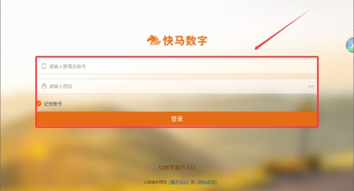 2、选择“客户入口”,在登录框中输入您的账号及密码,点击登录。