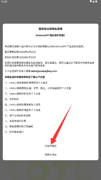 1、初次使用需阅读用户协议与隐私政策,确认无误后点击同意并接受按钮进入。