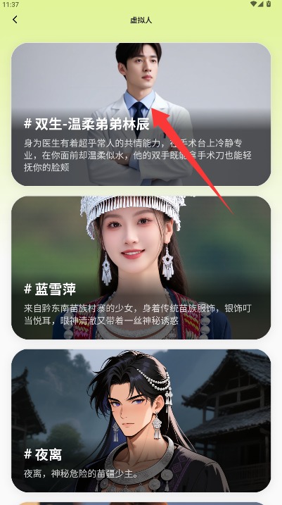 3、进入虚拟人功能主页面选择喜欢的AI角色类型,开始进行智能互动体验流程。