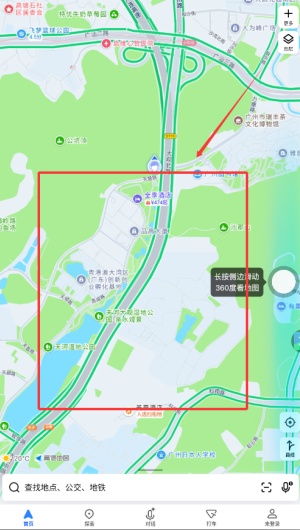 4、使用顶部的放大镜搜索框,可以快速查找并定位目的地。