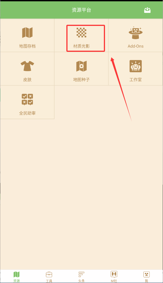 1 、进入应用后呈现的是以绿色为主基调的简洁画面,顶部条带明确标示软件名称,下部主要功能区清晰展示地图存档、材质光影等关键入口,布局合理确保各项服务触手可及。