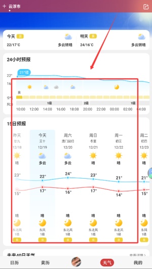 3、选择天气功能后,即可查看当前及未来数日的天气情况。