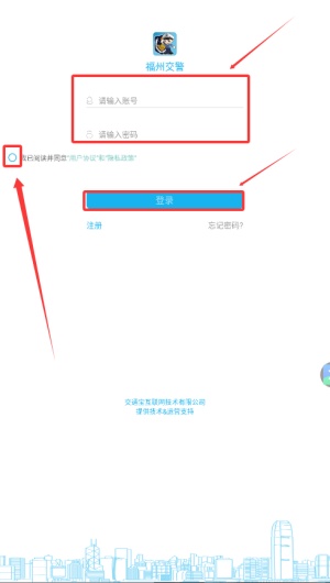 2、在登录界面输入您的账号和密码,勾选协议后点击登录按钮完成验证。