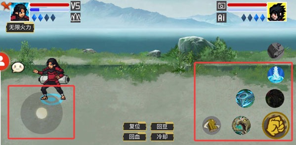经典复古的像素风图形打造的各种帅气忍者,可以操控这些忍者来同其它动漫之中的角色进行格斗