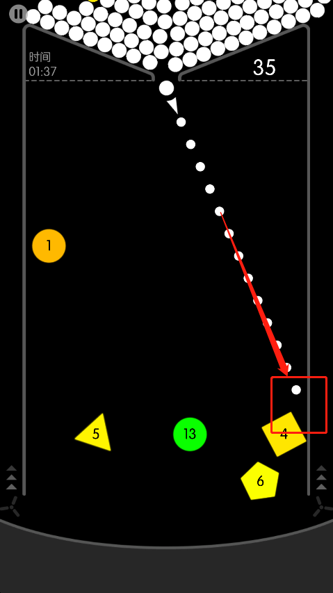 3、若多个方块形成包围圈,优先将球射向墙壁通过反弹进入圈内。这种策略能有效同时消除多个方块,节省弹球数量。