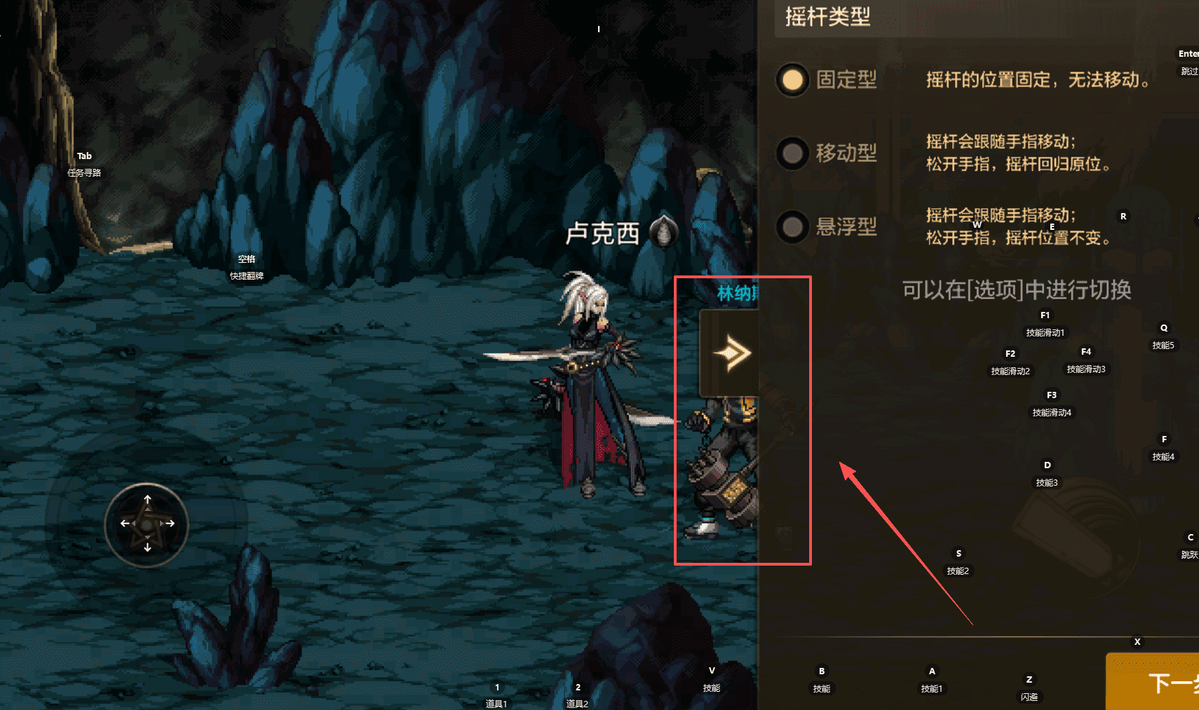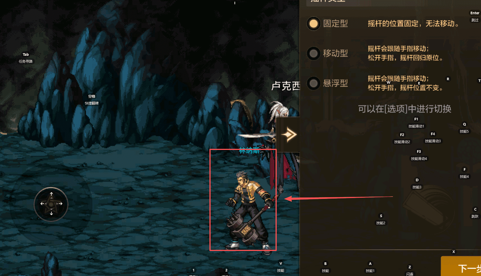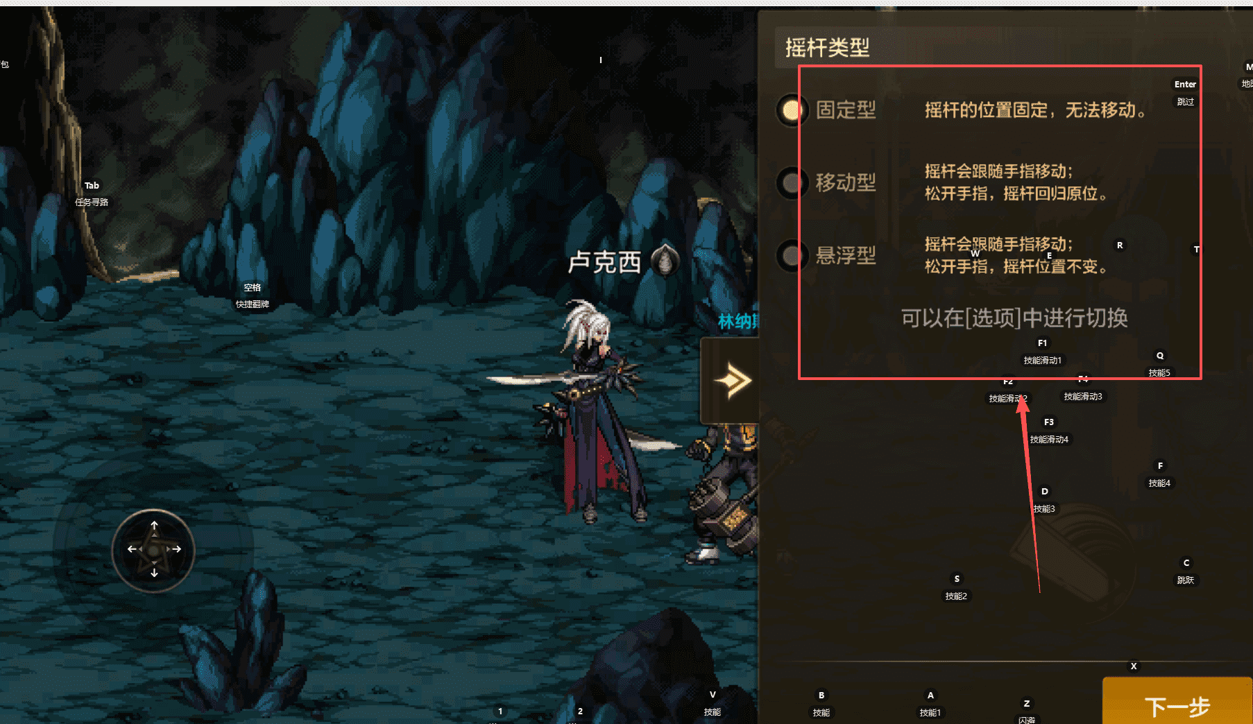 1、首先选择你喜欢的摇杆类型呢,固定型是位置不会动的‘。