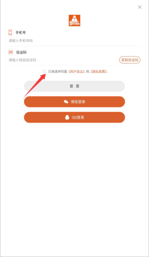 3、在登录页面勾选同意用户协议与隐私政策条款,进入身份验证步骤。