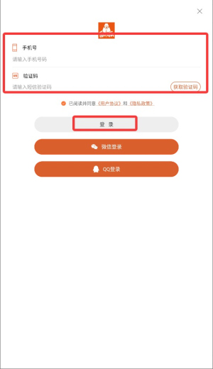 4、输入注册手机号码并获取短信验证码,填写后即可完成登录操作。